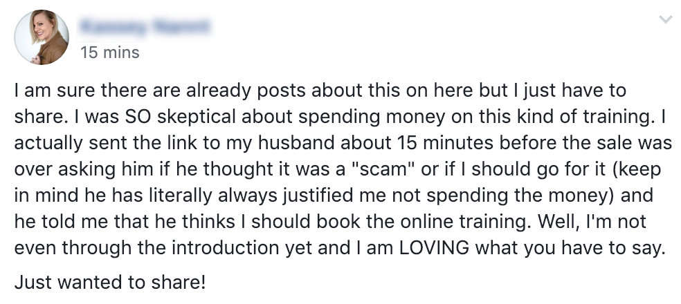 Its a big purchase and the program could create a big change in your life. Maybe things are a little slow right now and you don't know when the next client is going to come in.
